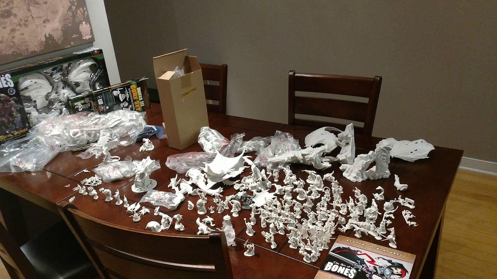 I've been well out of hobbying for quite a while now. But now that I'm back around my old stomping grounds, I'm gearing up to be productive! A friend received his Kickstarter of the third wave of Bones miniatures from Reaper. It's a lot or plastic! We've committed to a weekly get together to paint.